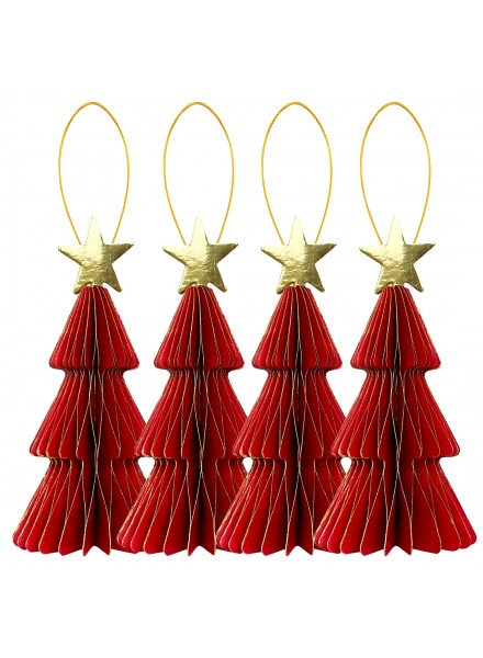4 Decorazioni carta cm 20/25 Albero rosso con stella