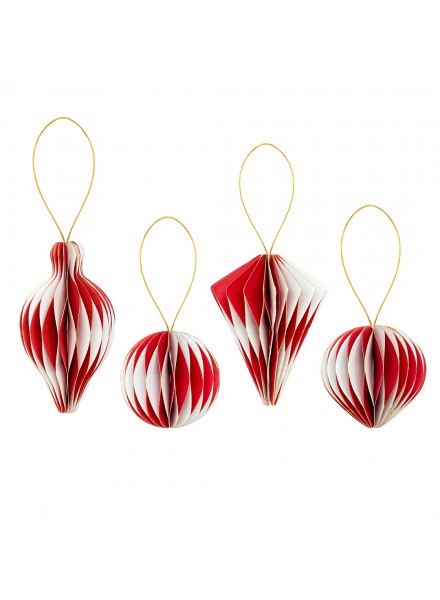 4 Decorazioni carta cm 8/10/12 Rosso e Bianco bicolore