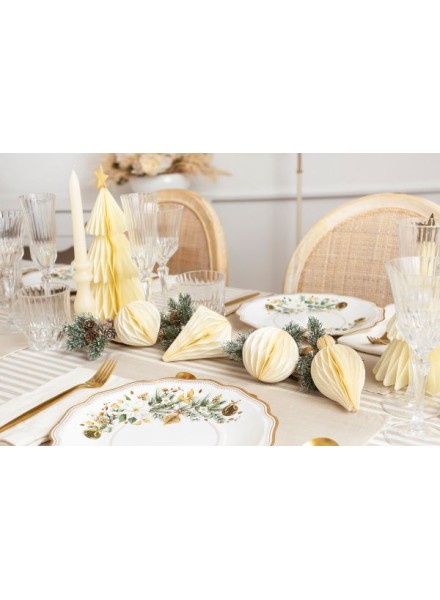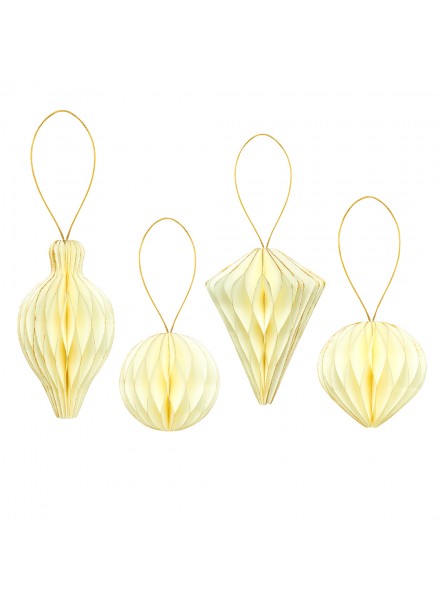 4 Decorazioni carta cm 8/10/13 Avorio. Le decorazioni natalizie in carta a nido d’ape (o honeycomb) sono un’idea semplice, economica e d’effetto per portare l’atmosfera delle feste in ogni ambiente. Realizzate con carta piegata a strati, queste decorazioni si aprono a ventaglio per creare forme tridimensionali leggere e suggestive. Perfette da appendere aggiungono un tocco artigianale e raffinato a casa, a scuola o in ufficio.