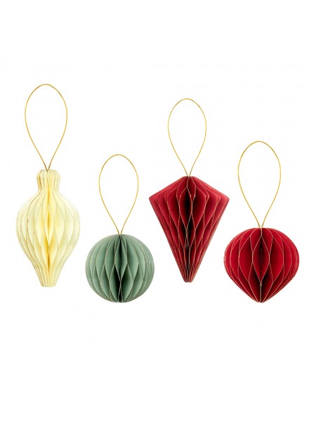 4 Decorazioni carta cm 8/10/13 Classic.Le decorazioni natalizie in carta a nido d’ape (o honeycomb) sono un’idea semplice, economica e d’effetto per portare l’atmosfera delle feste in ogni ambiente. Realizzate con carta piegata a strati, queste decorazioni si aprono a ventaglio per creare forme tridimensionali leggere e suggestive. Perfette da appendere aggiungono un tocco artigianale e raffinato a casa, a scuola o in ufficio.