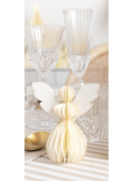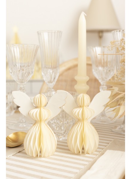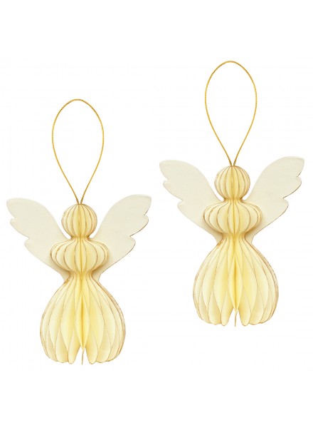 2 Decorazioni carta cm 12 Angelo avorio. Una decorazione con 2 angeli in carta da appendere, rifinita con cordino e profilo oro, è perfetta per un Natale elegante e spirituale, con un tocco artigianale e raffinato. Una decorazione sospesa delicata e simbolica, composta da due angeli stilizzati in carta, ogni angelo è finemente ritagliato e bordato con un profilo oro, che ne valorizza la silhouette e ne sottolinea la purezza delle forme. Ideale da appendere a finestre, porte, maniglie o all’albero di Natale, dona un tocco poetico e luminoso a ogni ambiente, dallo stile classico al minimal contemporaneo.