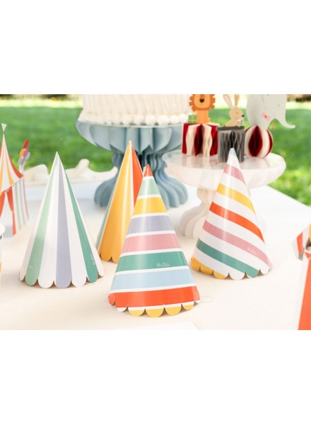 4 cappellini assortiti Stripes. Cappellini a righe colorate, disponibili in vari design, allegri e vivaci, perfetti per animare feste di compleanno e party per bambini, sono ideali per coinvolgere tutti gli invitati e creare un’atmosfera spensierata e divertente. Un accessorio immancabile per rendere la festa ancora più gioiosa