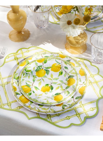 4 Tovagliette in carta cm 43x33 Bamboo. La tovaglietta in carta è decorata con un tralcio elegante composto da sottili canne di bamboo, il bamboo è reso in tonalità calde e naturali, dal beige al verde tenue, con leggere sfumature che richiamano la fibra vegetale. Il fondo della tovaglietta è neutro, così da far risaltare il decoro e mantenere un aspetto raffinato e ordinato. Nel complesso, la tovaglietta trasmette una sensazione di armonia e semplicità, unendo un’estetica naturale a un gusto elegante, perfetta per una tavola che vuole essere sobria ma ricercata.