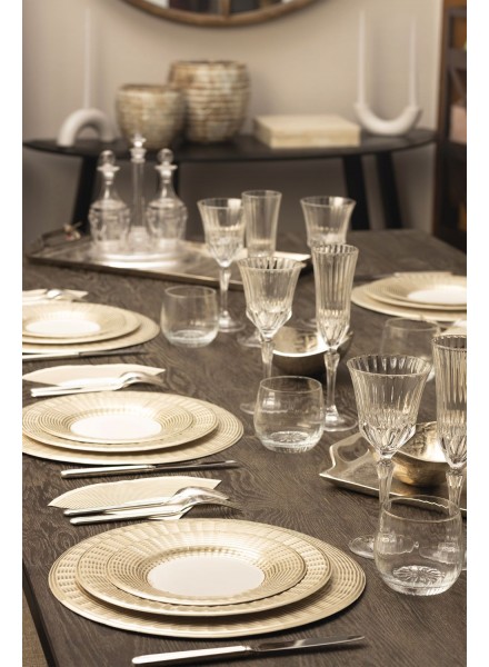 8 piatti da portata cm 27 Elegance Champagne. Oltre ad essere un favoloso cocktail frizzante, lo champagne è una tonalità ultra sofisticata, soprattutto quando si tratta di decorazioni per cerimonie. Dalle tovaglie ai vasi, dai tessuti delicatamente drappeggiati ai lampadari stravaganti, questa tonalità chic può aggiungere un aspetto sontuoso ad ogni occasione. Lo stile dominante andrà certamente a incidere anche sulla scelta dell'apparecchiatura. La personalizzazione di ogni elemento dell’evento che stai organizzando è fondamentale, per la tua tavola puoi optare per il nostro coordinato Elegance Champagne che con il suo gioco di righe bianco e champagne saprà illuminare in modo elegante la tua mise en place. I piatti Givi Italia rispettano l’ambiente, sono stati realizzati senza pellicola plastica, abbiamo sostituito il rivestimento con una base acquosa che garantisce il contatto alimentare e sono compostabili, li puoi gettare nell’umido.
