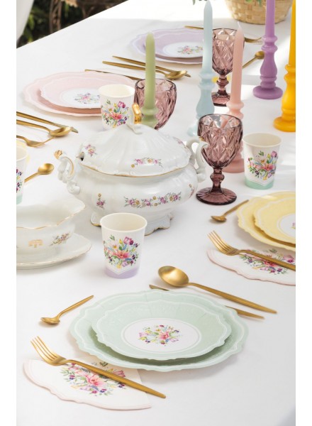 16 tovaglioli in carta dalla forma smerlata elegante e' arricchita da delicate stampe floreali. Dimensioni 33x33 cm. I tovaglioli English Garden Liberty rispettano l'ambiente: hanno ottenuto la Certificazione Aticelca e sono quindi riciclabili nella carta