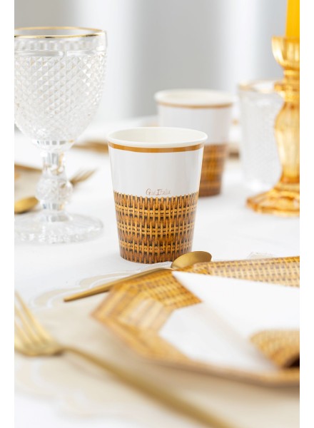 8 bicchieri in carta 250 cc con rivestimento. I nostri bicchieri Rattan sono ideali per dare un tocco di originalita' alla tua tavola. I bicchieri rispettano l'ambiente: hanno ottenuto la Certificazione Aticelca e sono quindi riciclabili nella carta.