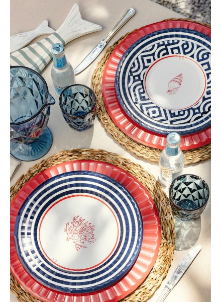 8 piatti da portata in carta cm 27. Il coordinato Portofino mixa quotidianità ed eleganza ed è perfetto per organizzare cene a base di pesce, aperitivi in terrazza o semplicemente per portare un po' di mare sulla tua tavola. I piatti Givi Italia rispettano l’ambiente, sono stati realizzati senza pellicola plastica, abbiamo sostituito il rivestimento con una base acquosa che garantisce il contatto alimentare ed hanno ottenuto la Certificazione Aticleca, li puoi riciclare nella carta