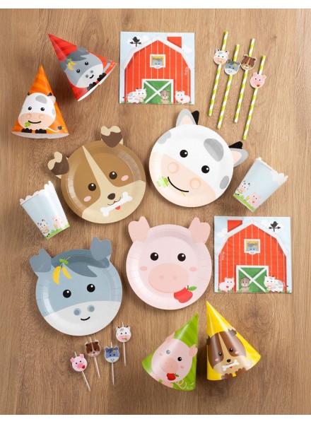 16 tovaglioli in carta perfetti per organizzare una festa a tema fattoria per i tuoi bimbi. Dimensioni 33x33 cm. Una mucca, un asinello, un cagnolino ed un maialino sono i protagonisti di questo colorato tovagliolo, da abbinare con gli altri elementi del coordinato Happy Farm. I tovaglioli hanno ottenuto la certificazione Aticelca e possono essere riciclati nella carta.