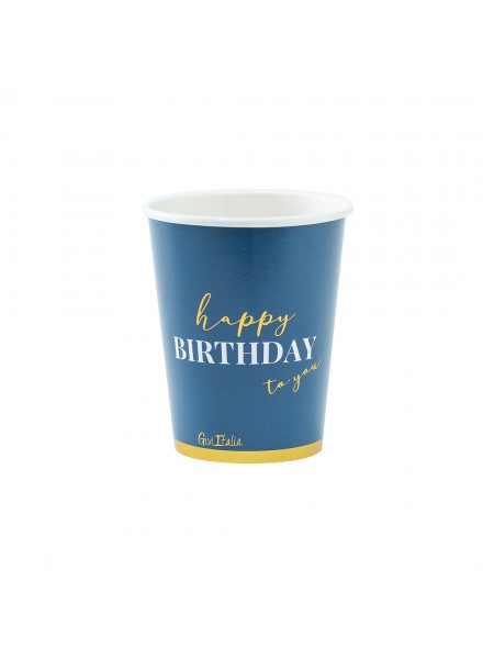 8 bicchieri in carta 250 cc con rivestimento Happy Birthday. Completa la tua tavola con i bicchieri in cartoncino perfettamente coordinati con i nostri piatti realizzati nelle nuances del blu. Givi Italia ha progettato una soluzione che consente di rispettare la normativa europea che prevede la marcatura obbligatoria per tutti i bicchieri monouso, senza penalizzare l'armonia e lo stile della tua tavola. I bicchieri sono riciclabili nella carta in quanto hanno ottenuto la Certificazione Aticelca.