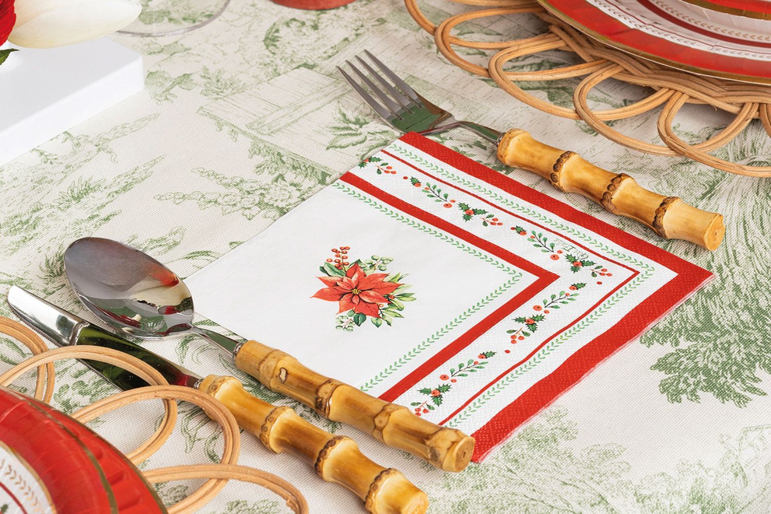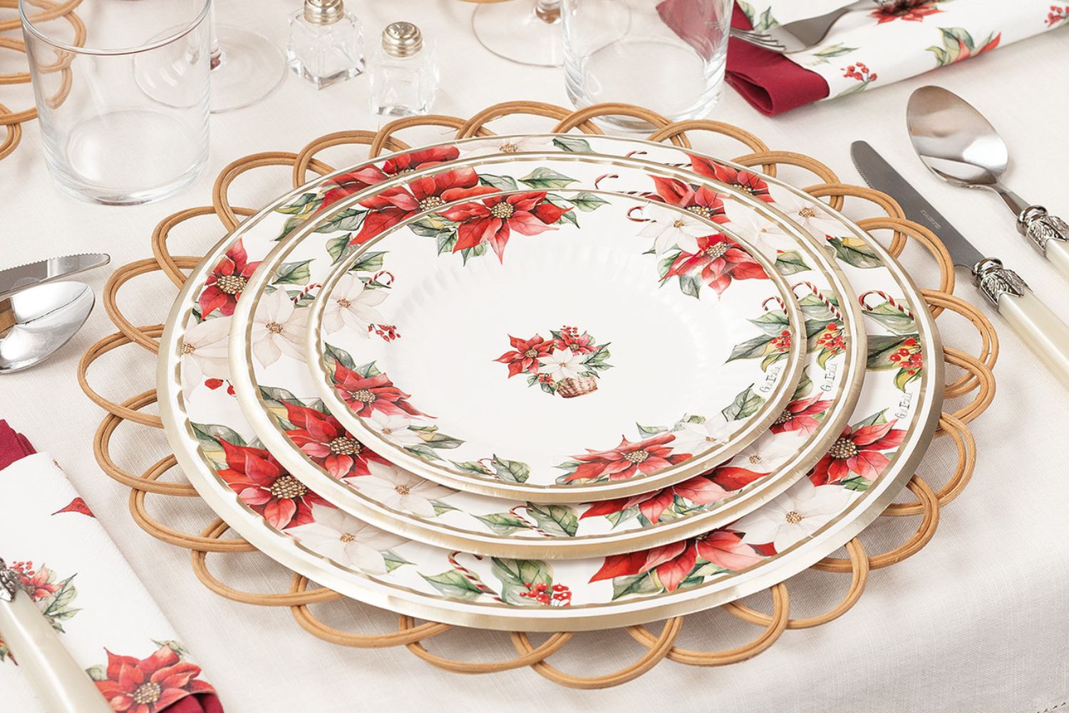 Il Natale è il momento in cui la famiglia si riunisce per condividere momenti di gioia e calore. E quale modo migliore per accogliere i propri cari se non con una tavola splendidamente apparecchiata? Il rosso, tradizionale simbolo del Natale, è perfetto per creare un'atmosfera calda e accogliente. Ma non è l'unico colore: abbinamenti originali, come il verde e il rosso, possono aggiungere un tocco di freschezza ed eleganza, rendendo ogni momento a tavola ancora più speciale.