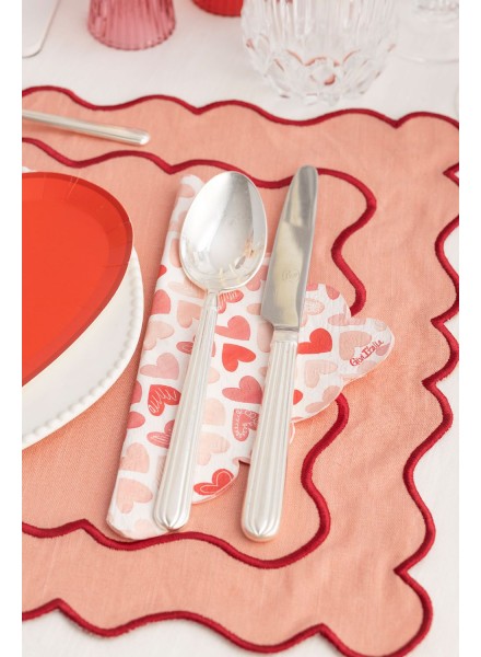 16 tovaglioli in carta cm 33x33, 3 veli. Il tovagliolo Little Hearts con il suo simpatico decoro a cuoricini dara' un tocco di romanticismo alla tua tavola, inoltre e' arricchito dalla finitura a smerlo. Questo tovagliolo della linea Lifestyle e' stato realizzato con l'intento di rendere unica la tua apparecchiatura. I tovaglioli rispettano l'ambiente: hanno ottenuto la Certificazione Aticelca e sono quindi riciclabili nella carta.