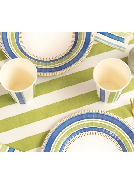 Runner cm 40x250 in airlaid a righe salvia. Semplice ma molto chic, il runner è diventato di grandissima tendenza negli ultimi anni, più pratico di una tovaglia e più ricercato ed elegante della tovaglietta monoposto, se abbinato con attenzione conferisce alla tavola unicità, gusto e stile, può essere usato sul tavolo nudo o sulla tua tovaglia.
