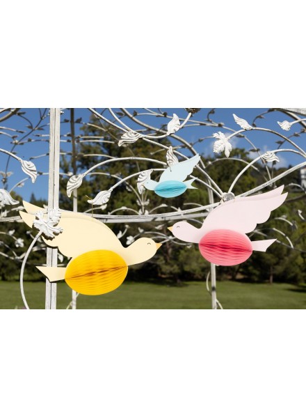 3 Decorazione in carta cm 10 Rondine colori assortiti. Appese con un filo trasparente o un nastro sottile, le rondini possono “volare” nell’ambiente, creando un effetto sospeso molto suggestivo, ideale sopra un tavolo, lungo un corridoio o vicino a una finestra. In alternativa, possono essere fissate alle pareti per comporre una decorazione tematica, magari abbinate a fiori di carta, rami o scritte decorative.