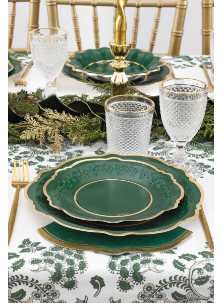 8 piatti da portata cm 27 Verdone con Bordo Oro. Verdone ed oro, un accostamento capace di creare una raffinatezza ed un'eleganza uniche perfette per ogni occasione. Givi Italia si impegna verso produzioni ecologicamente sostenibili, abbiamo recepito la direttiva europea SUP ed ottenuto la Certificazione Aticelca, i nostri piatti non contengono plastica e possono essere smaltiti nel contenitore della carta.