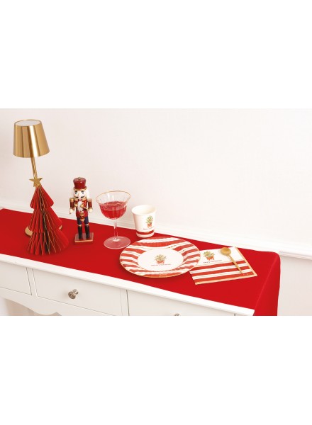 1 Runner cm 28x3 mt Tessuto Rosso Rubino. Apparecchiare la tavola natalizia con un runner in stoffa color rubino è una scelta elegante, calda e sofisticata. Il color rubino – un rosso profondo e vellutato – richiama perfettamente la magia del Natale senza essere eccessivamente acceso, regalando alla tavola un look raffinato ma accogliente.