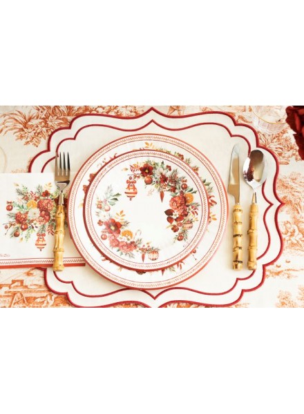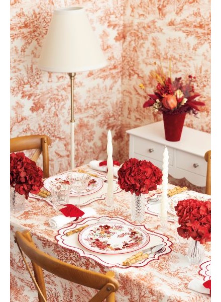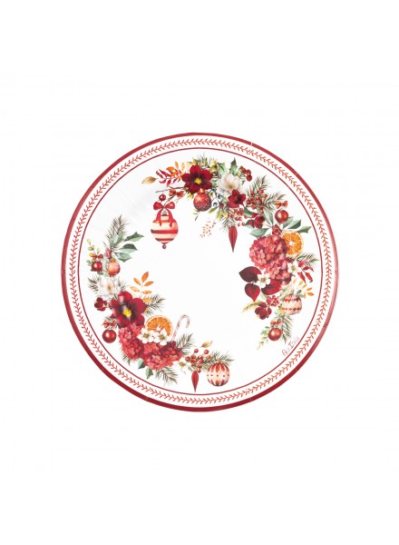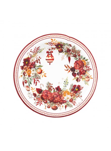 8 piatti da dessert cm 21 Christmas Bouquet. Immagina una tavola natalizia elegante e raffinata, dove il calore del Natale si fonde con la bellezza intramontabile delle ortensie rosse. Il tavolo è ricoperto da una tovaglia in lino bianco candido, che fa da sfondo neutro e luminoso per esaltare i colori vibranti della mise en place. Ogni dettaglio è pensato per accogliere, emozionare e far sentire a casa, perché a Natale, anche la tavola racconta una storia… ed il decoro Chrismas Bouquet parla di bellezza autentica, con un tocco di rosso che scalda il cuore. I piatti Givi Italia rispettano l’ambiente, sono stati realizzati senza pellicola plastica, abbiamo sostituito il rivestimento con una base acquosa che garantisce il contatto alimentare e sono compostabili, li puoi gettare nell’umido.