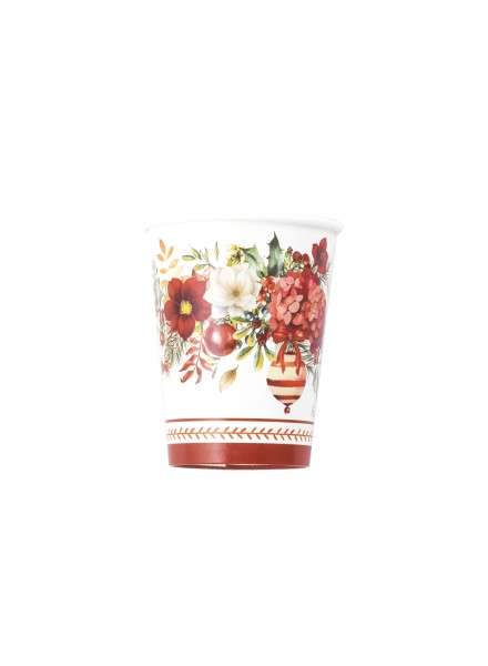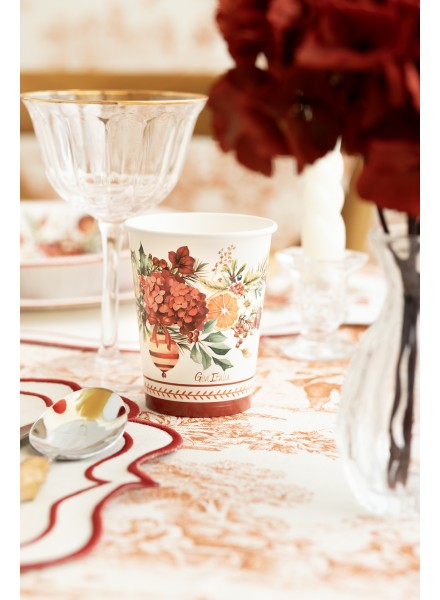 8 bicchieri 250 cc Christmas Bouquet. Quest’anno la magia della tavola prende vita con un tocco floreale unico: ortensie rosse come protagoniste di un allestimento che profuma di eleganza e calore. L’effetto complessivo è un mix perfetto di eleganza e calore, con le ortensie rosse protagoniste indiscusse di una scenografia floreale che incanta senza tempo. Ogni dettaglio è pensato per accogliere, emozionare e far sentire a casa, perché a Natale, anche la tavola racconta una storia… ed il decoro Chrismas Bouquet parla di bellezza autentica, con un tocco di rosso che scalda il cuore. I nostri bicchieri sono stati realizzati senza l’utilizzo della plastica e possono essere smaltiti nel contenitore dell’umido.