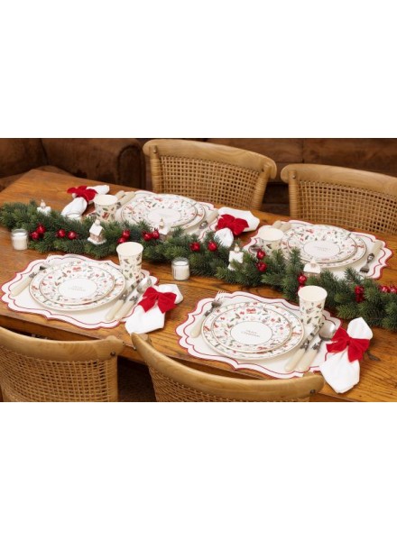 8 piatti da dessert cm 21. Per rendere ancora più speciale il pranzo o la cena delle feste, una tavola natalizia apparecchiata con un coordinato decorato con pattern natalizio è la scelta perfetta. Ogni elemento – dalla tovaglia ai piatti, dai tovaglioli ai bicchieri – è pensato per richiamare l’atmosfera calda, accogliente e festosa del Natale. I motivi decorativi possono spaziare tra stelle, fiocchi rossi, rametti di abete, bastoncini di zucchero, bacche rosse e stelle di Natale, creando un’armonia visiva che celebra la tradizione con un tocco di eleganza contemporanea. Givi Italia si impegna verso produzioni ecologicamente sostenibili, abbiamo recepito la direttiva europea SUP, i nostri piatti non contengono plastica e possono essere smaltiti nel contenitore dell’umido.