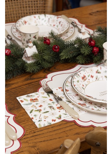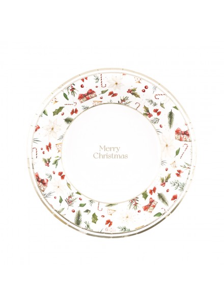 8 piatti cm 24 A little Christmas. Per rendere ancora più speciale il pranzo o la cena delle feste, una tavola natalizia apparecchiata con un coordinato decorato con pattern natalizio è la scelta perfetta. Ogni elemento – dalla tovaglia ai piatti, dai tovaglioli ai bicchieri – è pensato per richiamare l’atmosfera calda, accogliente e festosa del Natale. I motivi decorativi possono spaziare tra stelle, fiocchi rossi, rametti di abete, bastoncini di zucchero, bacche rosse e stelle di Natale, creando un’armonia visiva che celebra la tradizione con un tocco di eleganza contemporanea. Il coordinato A little Christmas permette di apparecchiare in modo semplice ma d’effetto: basta abbinare i vari pezzi tra loro per ottenere un risultato coerente e raffinato. I colori classici – rosso, verde, bianco e champagne – si fondono in un’ambientazione che sa di festa, famiglia e tradizione. Perfetta per chi desidera una tavola pronta all’uso ma curata nei dettagli, questa mise en place è l’ideale per creare un’atmosfera conviviale e scenografica, senza rinunciare allo stile. 8 piatti da dessert cm 21. Per rendere ancora più speciale il pranzo o la cena delle feste, una tavola natalizia apparecchiata con un coordinato decorato con pattern natalizio è la scelta perfetta. Ogni elemento – dalla tovaglia ai piatti, dai tovaglioli ai bicchieri – è pensato per richiamare l’atmosfera calda, accogliente e festosa del Natale. I motivi decorativi possono spaziare tra stelle, fiocchi rossi, rametti di abete, bastoncini di zucchero, bacche rosse e stelle di Natale, creando un’armonia visiva che celebra la tradizione con un tocco di eleganza contemporanea. Givi Italia si impegna verso produzioni ecologicamente sostenibili, abbiamo recepito la direttiva europea SUP, i nostri piatti non contengono plastica e possono essere smaltiti nel contenitore dell’umido.