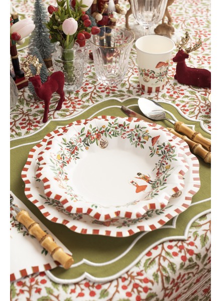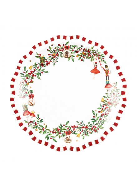 8 piatti da portata cm 27 Christmas Vintage. Apparecchiare una tavola natalizia con piatti decorati in stile Schiaccianoci è un’idea meravigliosa per creare un’atmosfera fiabesca e calorosa, perfetta per incantare grandi e piccoli durante le festività. Ispirata al celebre balletto, questa mise en place mescola eleganza e magia, fondendo elementi classici e dettagli incantati. Il centrotavola si trasforma in un piccolo scenario fiabesco, tra rami d’abete, candele, decorazioni vintage e miniature da favola. Givi Italia si impegna verso produzioni ecologicamente sostenibili, abbiamo recepito la direttiva europea SUP, i nostri piatti non contengono plastica e possono essere smaltiti nel contenitore dell’umido.