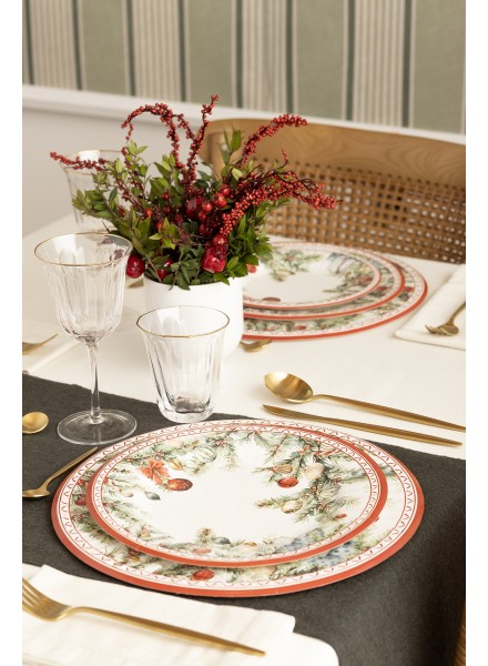 8 piatti da portata cm 27 Christmas Gift. Mettere i regali sotto l’albero è oggi un momento atteso con emozione da grandi e piccini. Tra le tante tradizioni natalizie diffuse in tutto il mondo, infatti, una delle più amate è sicuramente quella di mettere i regali sotto l’albero di Natale, questo gesto simbolico rappresenta l'attesa, la sorpresa e la gioia del donare e ricevere, valori fondamentali dello spirito natalizio che caratterizzeranno la tua mise en place. I piatti Givi Italia rispettano l’ambiente, sono stati realizzati senza pellicola plastica, abbiamo sostituito il rivestimento con una base acquosa che garantisce il contatto alimentare e sono compostabili, li puoi gettare nell’umido.