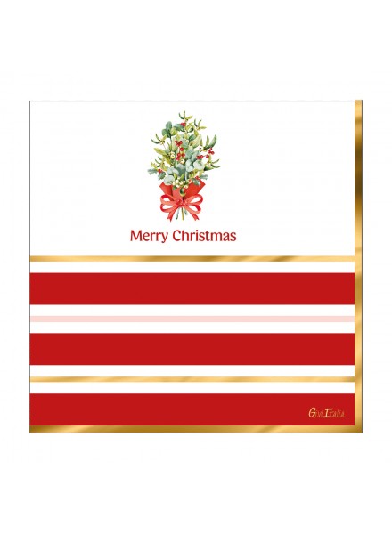 16 tovaglioli cm 33x33 3 veli Christmas Party. Con questa mise en place, la tua tavola sarà festosa, raffinata e instagrammabile. Il perfetto mix tra tradizione natalizia e design contemporaneo! I tovaglioli hanno ottenuto la certificazione Aticelca e pertanto possono essere riciclati nella carta