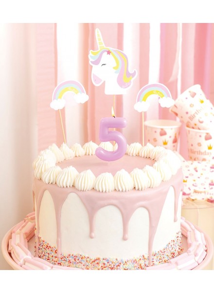 6 picks altezza cm 22 con decoro Unicorno ed Arcobaleno. I picks sono indispensabili per dare un tocco di magia al tuo buffet.